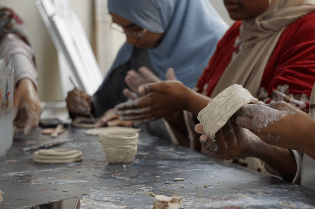 Students sculpt with clay at a pottery night held by the Egyptian Student Association (ESA) at Stamp Studio A on Thursday, April 10. (Al-Hikmah/Amna Tariq)