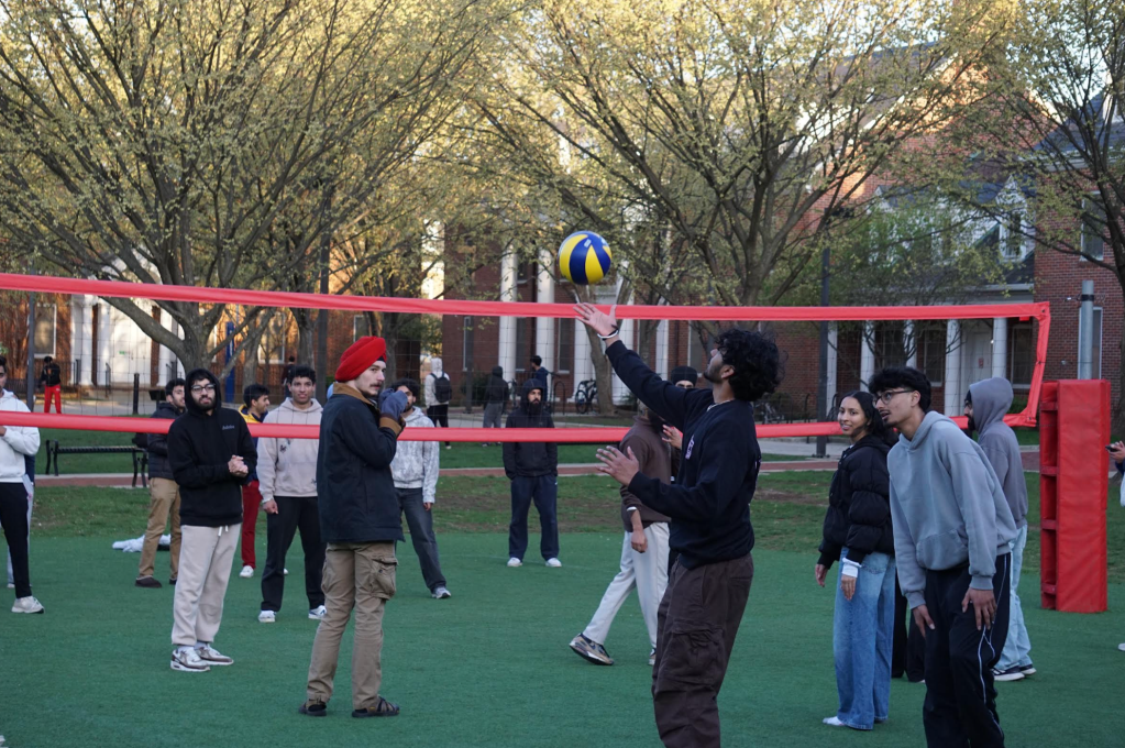 Students play volleyball together at the Eid picnic held by the Muslim Student Association (MSA) at Washington Quad on Tuesday, April 8. (Al-Hikmah/Amna Tariq)