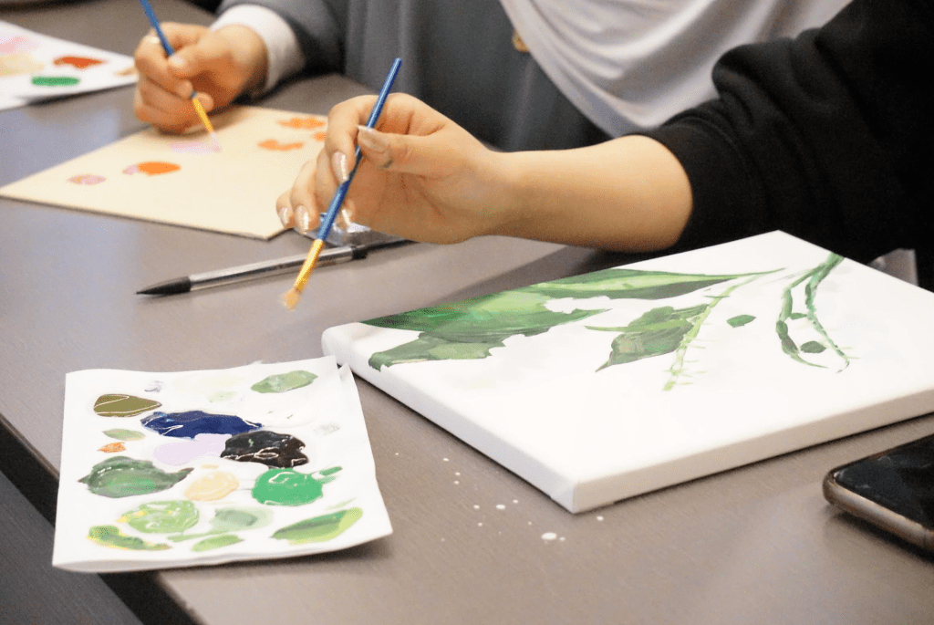 Students paint on canvases at Paint Night held by the Muslim Student Association (MSA) in ESJ on Monday, April 1. (Al-Hikmah/Amna Tariq)
