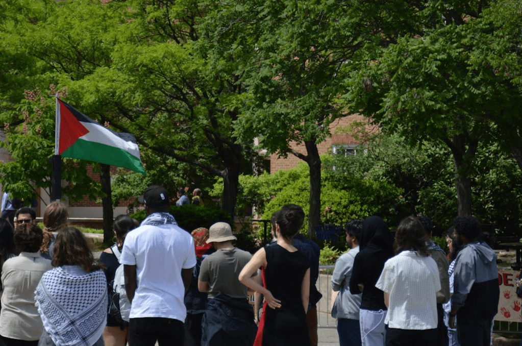 Students come together for the “Boycott Israel Fest” protest held by the Students for Justice in Palestine (SJP) at Hornbake Plaza on Tuesday, May 6. (Al-Hikmah/Safiyah Fatima)