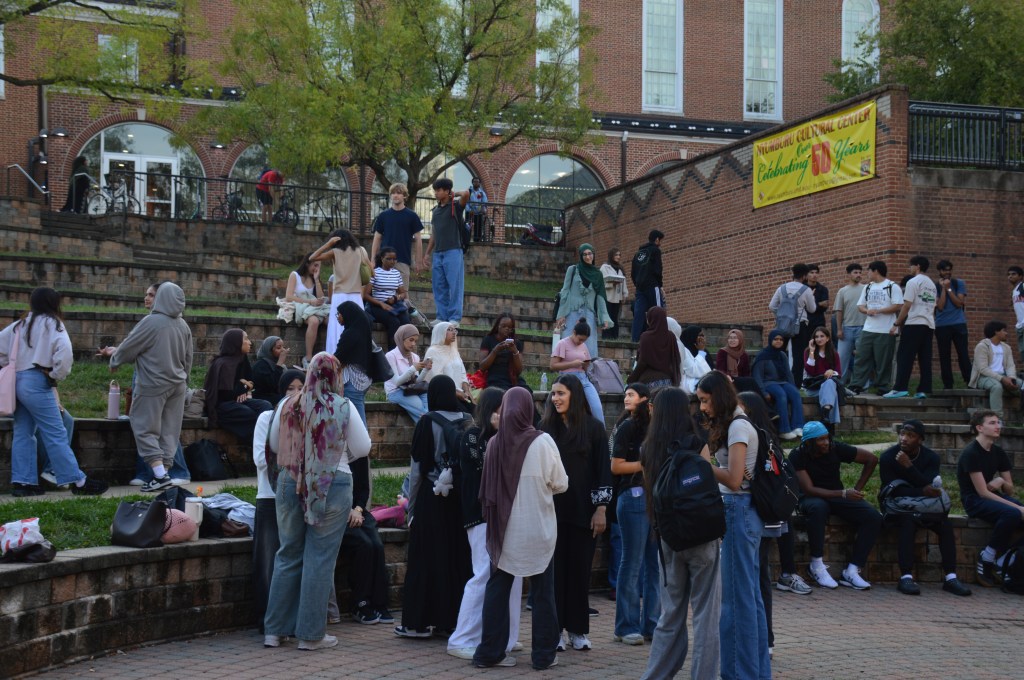 Students from several cultural organizations gather for an inter-org potluck hosted in collaboration with the Muslim Student Association (MSA) at Nyumburu Amphitheater on Tuesday, Sept. 23, 2025. (Al-Hikmah/Safiyah Fatima)