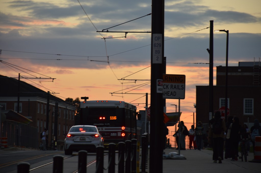 Vehicles stop for pedestrian traffic on Campus Drive next to Stamp on Tuesday evening, Sept. 23, 2025. (Al-Hikmah/Safiyah Fatima)