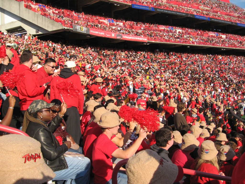 Students cheer at the homecoming football game against the Indiana University Hoosiers in SECU Stadium on Saturday, Nov. 1, 2025. (Al-Hikmah/Amna Tariq)